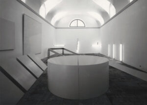 대 마구간에 설치된 작품들: 로버트 모리스(Robert Morris), 로버트 라이먼(Robert Ryman), 댄 플래빈(Dan Flavin), 1972 ⓒGian Sinigaglia – Archivio Panza / Giorgio Colombo, Milan