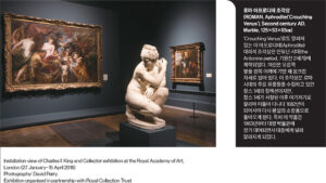전 세계적으로 다시 자국주의, 내셔널리즘에 입각한 포퓰리즘의 시대로 들어가는 시점이다. 이럴 때 본 [Charles1:King and Collector] 전시는 다시 한번, 250년 전통의 영국 로열 아카데미의 위상을 재확인하며, 브렉시트하는 영국이 유럽에서의 예술적 리더십을 유지하고 있다는 입장을 다소 옹호하고 있는 메시지를 전하는 것이 아닐까. 혁명가 크롬웰에 의해 사라졌던 작품들이 런던으로 돌아온 것을 영국인은 매우 뭉클하게 느끼는 듯하다. 하지만 그 작품들은 영국인의 손에 의해 사라졌었던 것이며, 다시 한번 예술의 가치와 대중의 의미를 생각하게 해주는 전시인 것 같다. 전시는 4월 15일까지다.