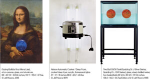 그렇다면 과연 그의 작품의 의미는 무엇일까? 아주 가벼워 보이는 주제들, 특히 그가 2007년부터 10여 년간 만들고 있는 백화점 토끼, 가제, 수영장 튜브 등의 조각은 어떤 의미인가? 제프 쿤스의 레디메이드(이미 만들어진 물건을 선정하여 작가가 작품으로 지칭하는 작품)를 이해하기 위해선, 그가 작품을 시작한 시카고대학에서의 만남들을 알아야 할 것 같다. 어떻게 보면, 제프 쿤스의 레디메이드는 뒤샹이 시작한 언어기호학적 레디메이드와 다른, ‘연역적 사고’가 연관된 레디메이드라고 생각할 수 있다. 그의 이러한 생각은 시카고미술대학에서 사사 받은 시카고 이미지스트라는 짐 너트(Jim Nutt), 에드 파스케(Ed Paschke), 로저 브라운(Roger Brown) 선생님의 영향을 받은 것으로 보인다. 당시 짐 너트는 그에게 ‘작업을 한다는 것’은 작품을 만드는 재료가 되는 다양한 물건을 어떻게 발견하는 것인지, 더 나아가 미술 이론의 모순된 생리들에 대한 비평적 사고를 길러주었다. 어떻게 보면, 그에게 많은 작품의 영감과 살아 있는 동시대성이 ‘일상생활(everyday life)’에서 온다는 것을 알게 해준 중요한 시간이었다.