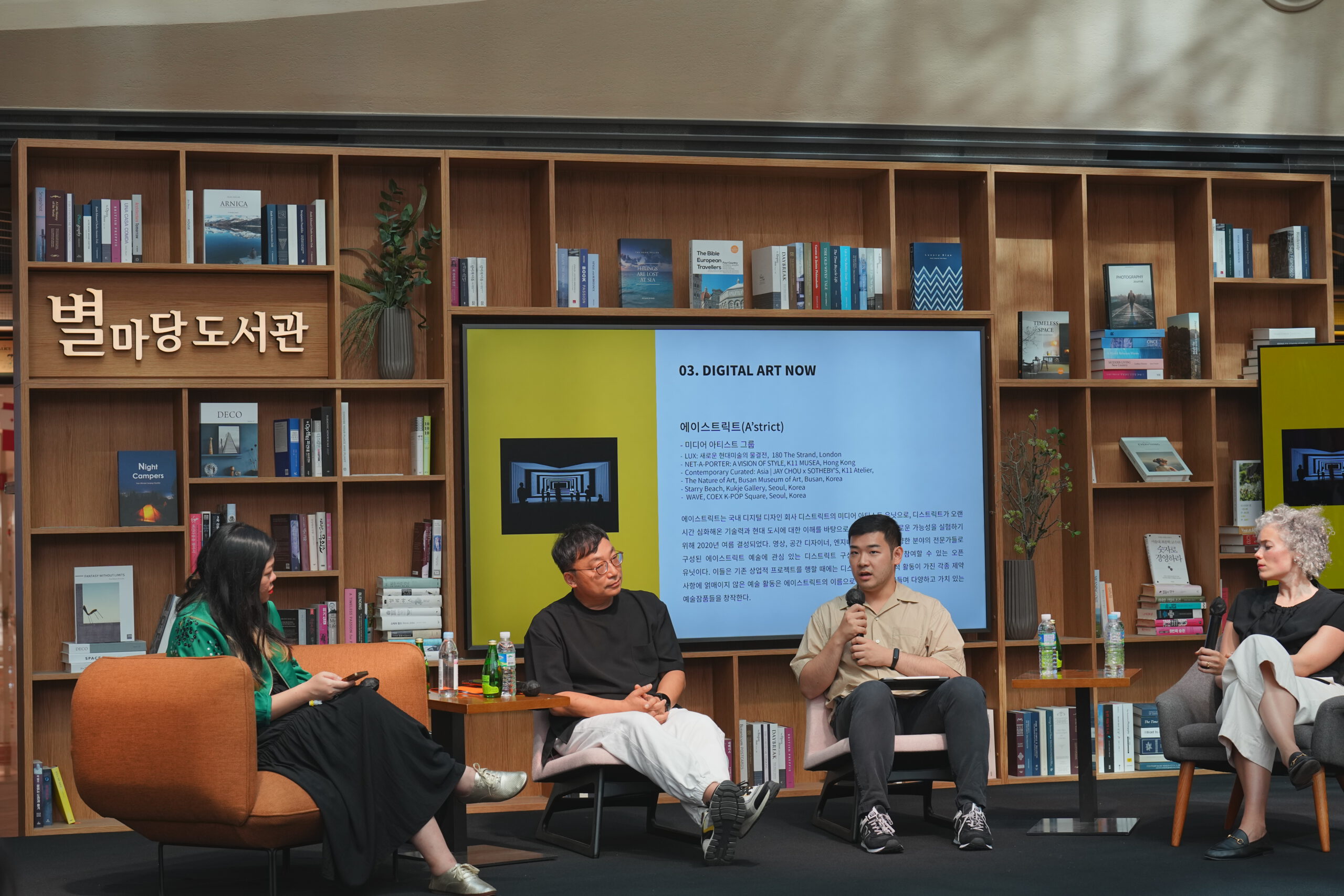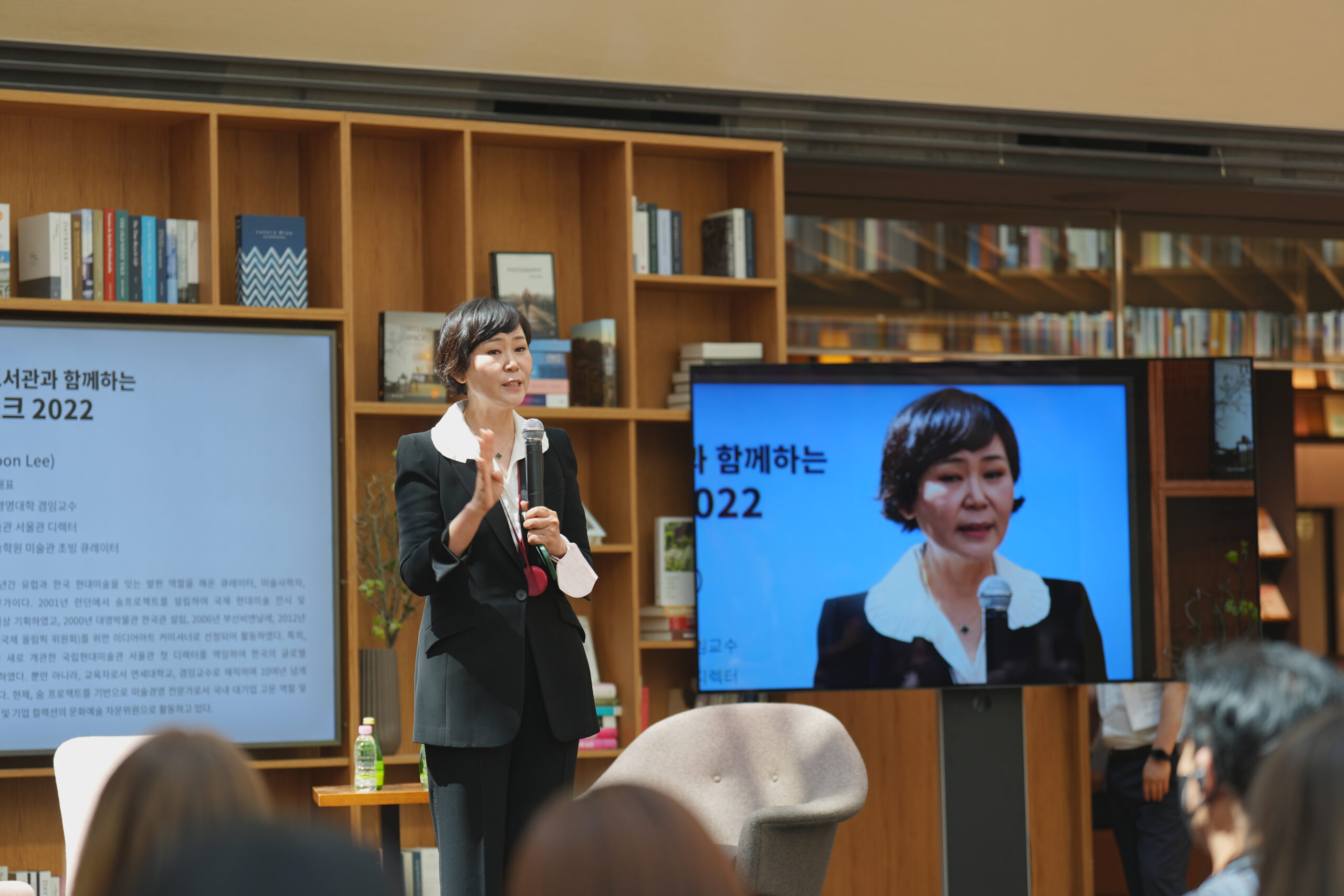 The first edition of “Art Talk 2022,” organized by SUUM Project, was held from September 1 to 2, 2022, at the Byeolmadang Library in Starfield COEX Mall, Samseong-dong, Seoul. Sponsored by Shinsegae Property and Lush Korea, the event was broadcast live and took place during Frieze Seoul Week. It brought together global art professionals, collectors, and Korean audiences, featuring discussions among artists, curators, and other art experts on the trends and future of the art market.