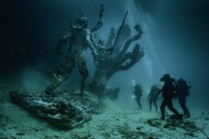 바닷속에서 작품을 발굴하는 과정을 사진으로 찍어 조각과 함께 라이트박스 사진 작업으로 소개했다. 데미안 허스트, 네 명의 잠수부에 의해 발견된 히드라와 칼리, 알루미늄, 프린트된 폴리에스터, 아크릴 라이트 박스, 244.2×366.2×10㎝ / damien hirst and scince ltd.