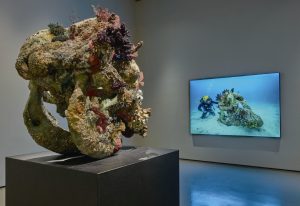 2008년 소더비 이브닝 세일에서 호가 2200억원을 기록하며 세간의 화제가 되는 동시에 미술의 상업성에 대한 비판을 불러일으킨 허스트가 10여 년간의 침묵을 깨고 돌아왔다. 2016년 런던에 자신의 콜렉션을 선보이는 뉴포트 스트리트 갤러리(Newport Street Gallery) 개관 외에 개인전을 열지 않았던 그의 전시는 개관 전부터 매우 큰 기대와 관심을 모았으며, 이번 전시를 통해 선보인 신작은 범상치 않았다. 전시장 입구에 들어서면 심연의 바다 속에 모습을 드러낸 난파선에서 예술품을 건져 올리는 다이버들의 영상과 사진을 만나게 된다. 이야기는 이렇게 시작된다. ‘2세기 초 안티오크(Antioch)에 살던 부유한 콜렉터 시프 아모탄(Cif Amontan) 2세는 노예 신분에서 벗어나 막대한 재산을 모은 전설적인 인물로, 막대한 양의 조각·보석·동전과 세계의 진귀한 물건들을 모아 들였다. 그가 모은 보물을 싣고 아시트 메이어(Asit Mayor)시에 준공될 해의 신전으로 향하던 거대선 ‘아피스토스(믿을 수 없는 이란 뜻의 고대어)’는 알 수 없는 이유로 침몰했다. 그리고 전설이 되어 떠돌던 그 유적들은 2008년 아프리카 동쪽 해안 인도양에 가라앉았던 전설적인 보물들로 재발견되었다. 이 유적들은 2년 뒤인 2010년 인양되어 바다 세계의 흔적을 안고 다시 세상의 빛을 보게 되었다. 유물들 사이사이에는 배에서 건져 올린 기록들과 설명들이 제시된다. 배와 함께 발견된 4페이지의 이상한 물건들 리스트 말미에 적힌 ‘이 물건은 자유인 아모탄이 그의 배 아피스토스에 소장품을 실었다’는 문장은 이 전설이 실제로 존재했음을 입증하는 듯하다. 그러나 이는 허스트가 전시를 위해 만들어 낸 픽션이다. 관객은 작품과 기록을 마주하며 진실과 허구 사이의 개연성에 대한 끊임없는 질문을 하게 된다.