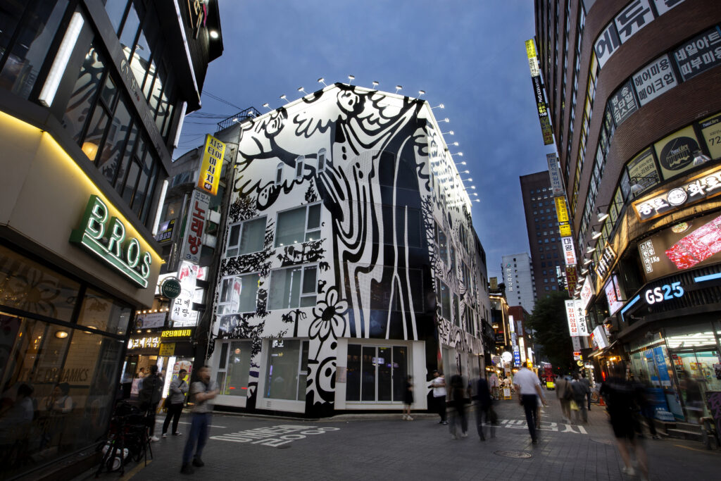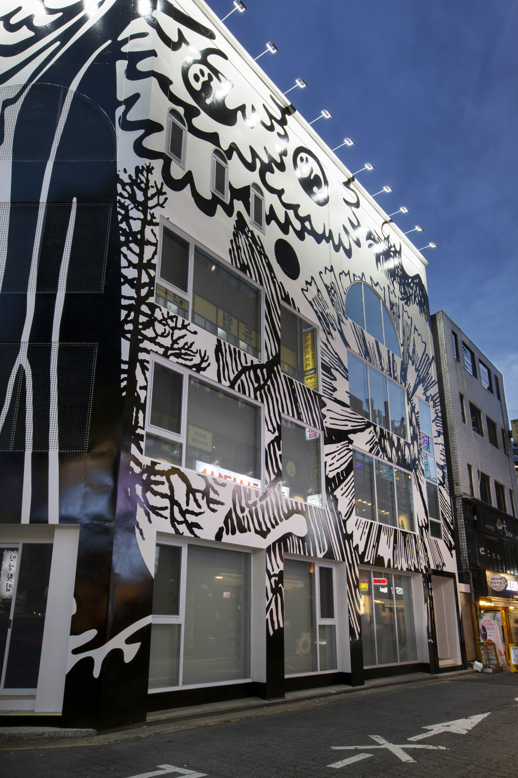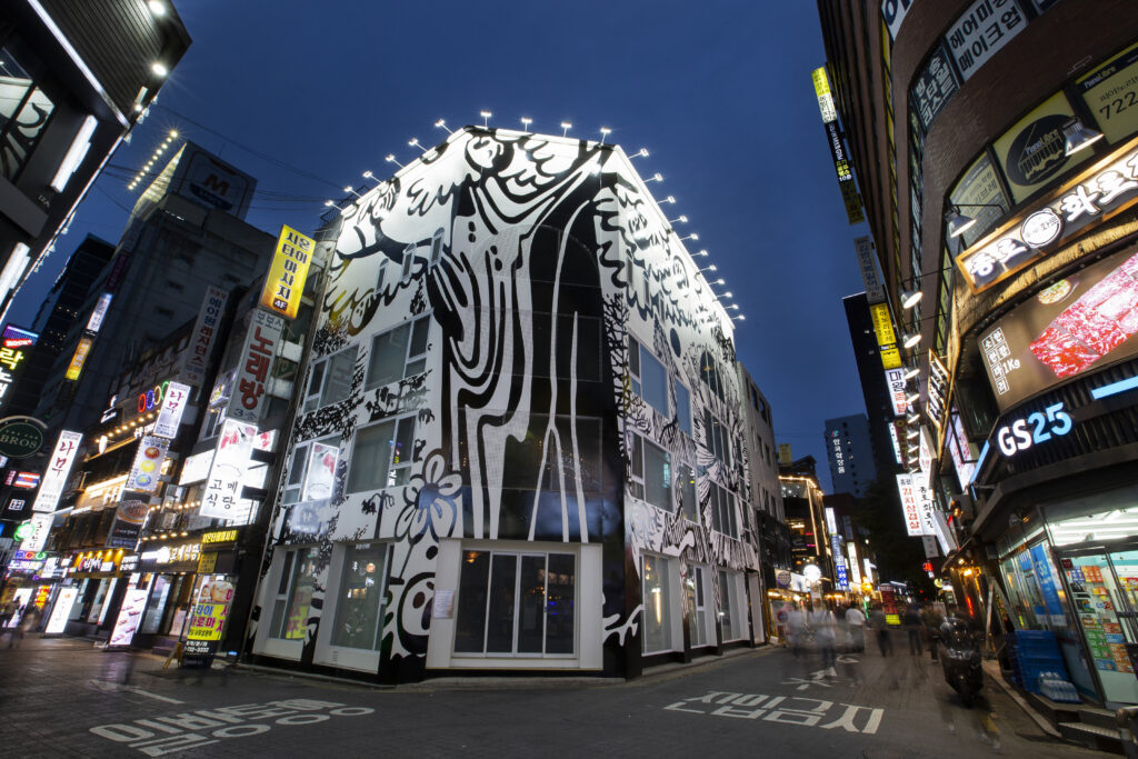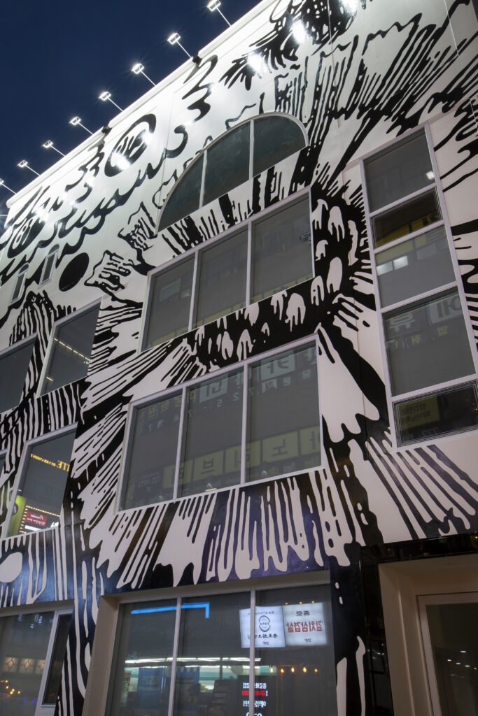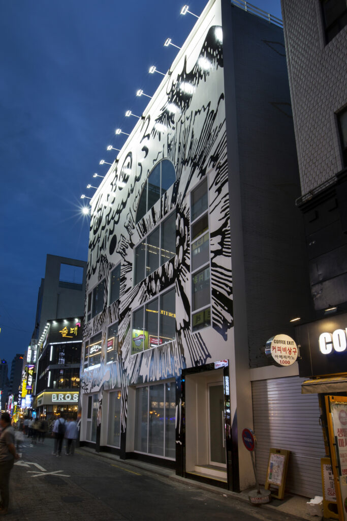 The Gwancheol-dong Art Project, curated by SUUM, reimagined the exterior of the Jaeyoung Building in Gwancheol-dong, Jongno-gu, Seoul. For this project, world-renowned artist Paul Morrison—best known for his monochromatic botanical landscapes—transformed the building façade with a striking black-and-white mural. The artwork served to refresh and elevate the atmosphere near Jonggak Station, offering visual respite from the area’s urban density through the artist’s bold visual language.