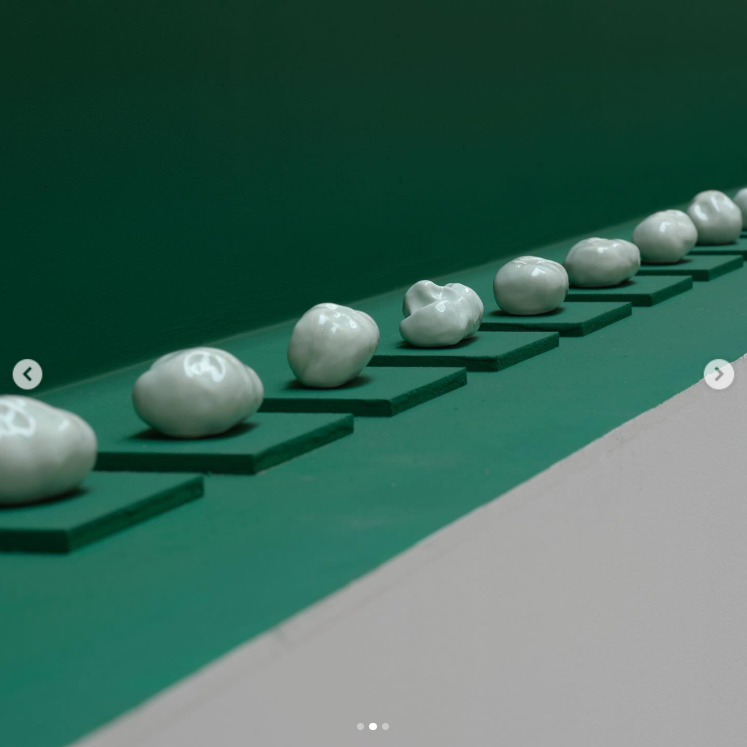 The performance and installation piece, “The Gift” (2024), was realized on July 20–21, inviting 200 individuals who have laid their loved ones to rest at Honorstone to act as co-creators. These anonymous participants held white porcelain clay in their hands—as if warmly grasping the hand of another—to confront their feelings and memories anew. These clay forms were then refined by the artist into small ceramic pieces, embodying the time and touch dedicated to others, now welcoming all who visit Honorstone.