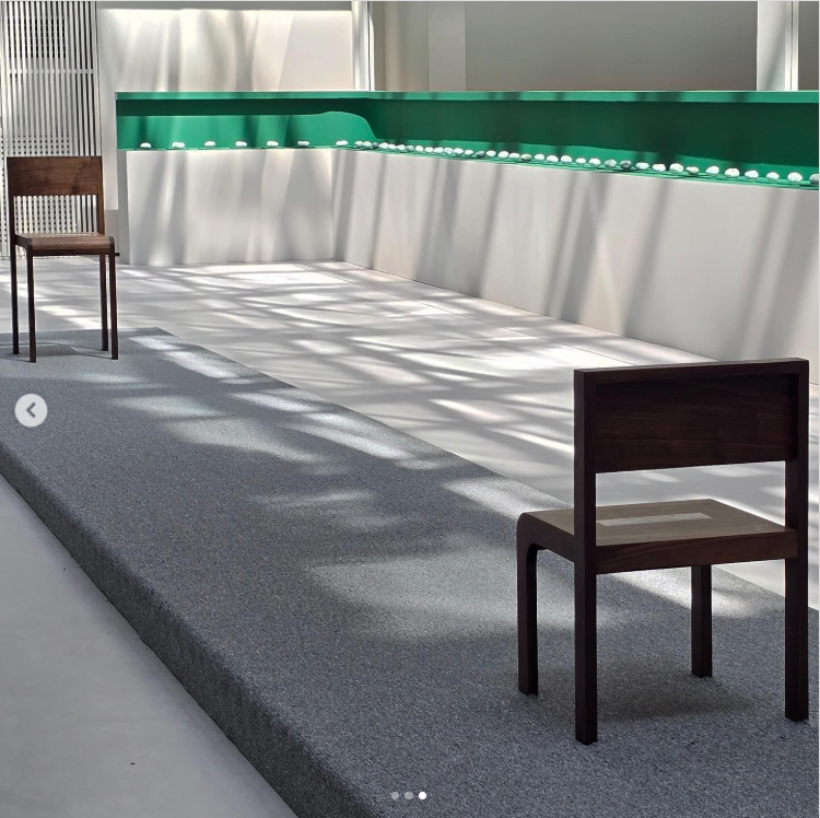 The second installation and performance work, “Facing” (2024), consists of two chairs of identical shape but different sizes. Visitors are invited to sit spontaneously in the varying chairs, experiencing an unfamiliar physical sensation based on the scale of their bodies. While seated, the audience becomes a vital part of the work, reflecting on shared memories with others or introspecting on their own lives.