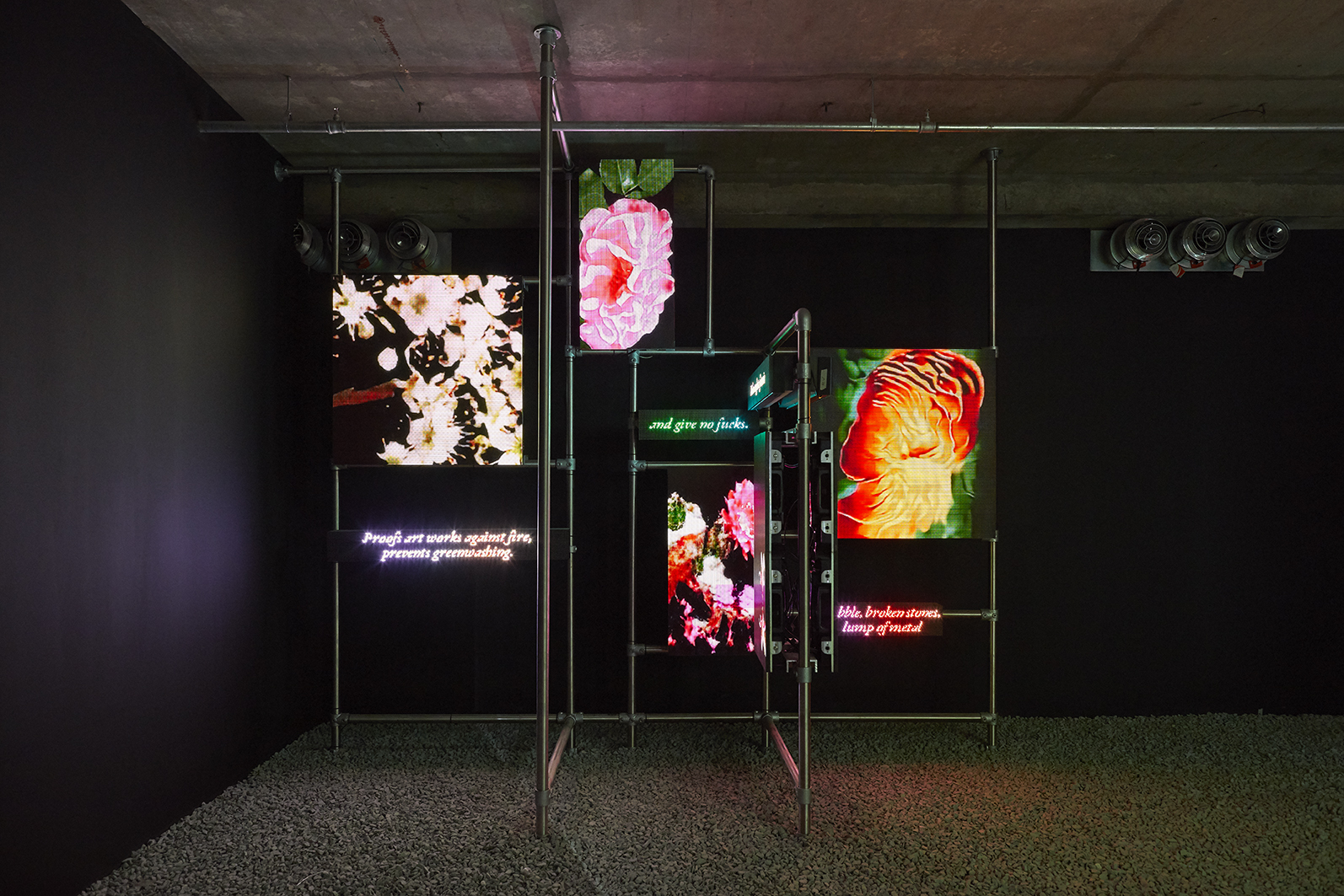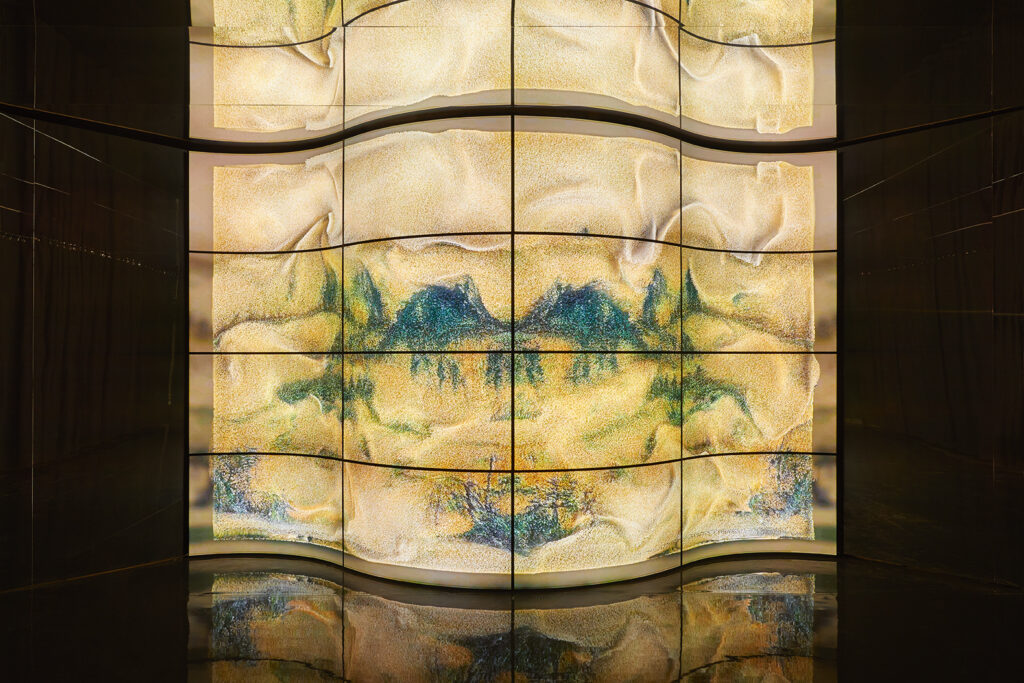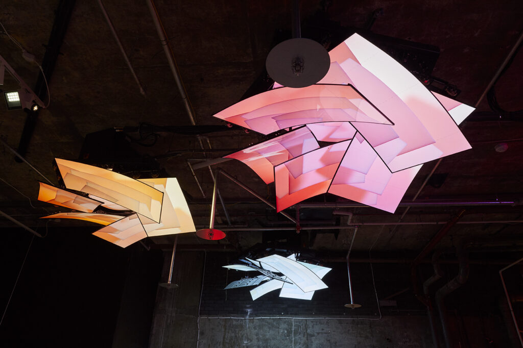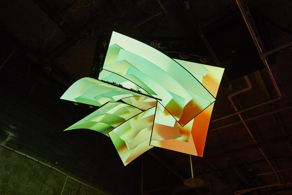 전시는 미디어 아트 분야의 최전선에서 두각을 나타내는 세계적인 뉴미디어 아티스트 그룹전으로 12개의 그룹이 참가하여 대규모 설치 작품 13점을 선보였습니다. 참여작가는 에스 데블린, 줄리안 녹스 ,아이아트 스튜디오, 에이스트릭트 및 랜덤 인터내셔널의 커미션 신작을 선보였습니다. 또한 영국에서 첫 선보이는 레픽 아나돌의 ‘르네상스 제너러티브 드림'(Renaissance Generative Dream, 2019), 히토 슈타이얼(Hito Steyerl)의 ‘디스 이스 어 퓨처'(This is the Future), 유니버셜 에브리씽의 ‘트랜스피겨레이션'(Transfiguration(2020), 에이스트릭트(a’strict)의 ‘스태리 비치'(Starry Beach)와 카오 위시(Cao Yuxi)의 새로운 AI 페인팅 작품 ‘인공지능산수도'(Shan Shui Painting by AI)를 선보였습니다.