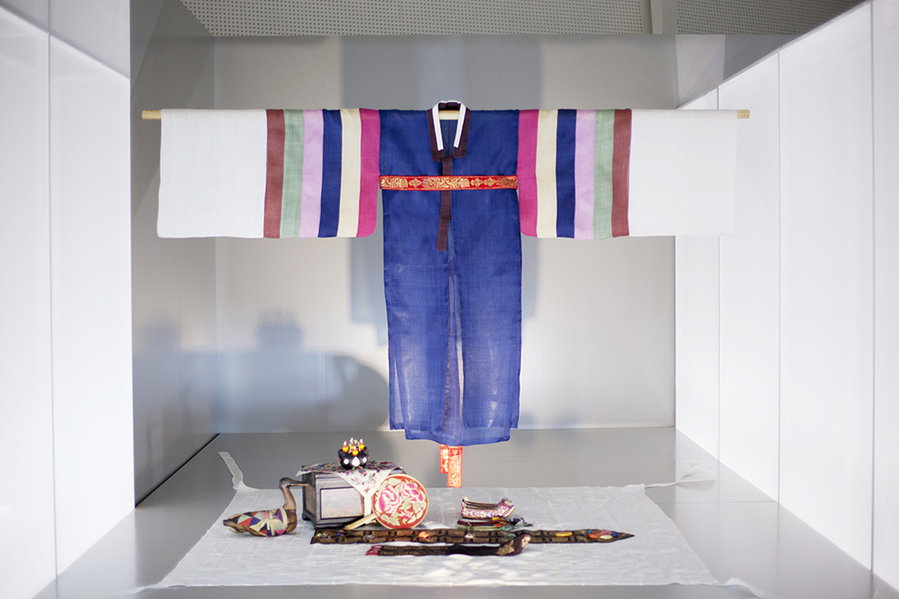 Designed to resemble the flat structure of hanbok itself, the exhibition space invites visitors to step “inside” the garments, providing a fresh and immersive experience.