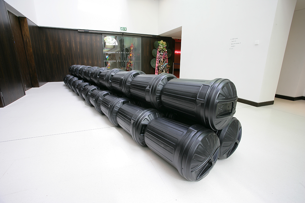 미술관 본관 로비에 설치된 검정 플라스틱 소쿠리로 만들어진 굴뚝은 영국 산업혁명 시기 주요 공장지대였던 버밍험의 별명인 ‘The Black Country’의 역사를 반영한다. 이 밖에도 동양의 전통 혼례식, 캐리비언 카니발, 그리고 이 지역의 작은 구멍가게 등과 어우러진 한편의 드로잉을 담아낸다.